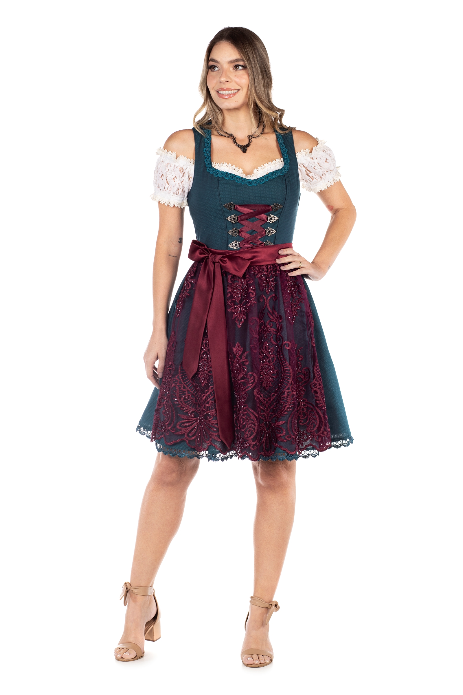 Encante-se com o charme e a elegância do vestido típico alemão Dirndl, uma peça tradicional usada em festas como a Oktoberfest e outros eventos culturais germânicos.